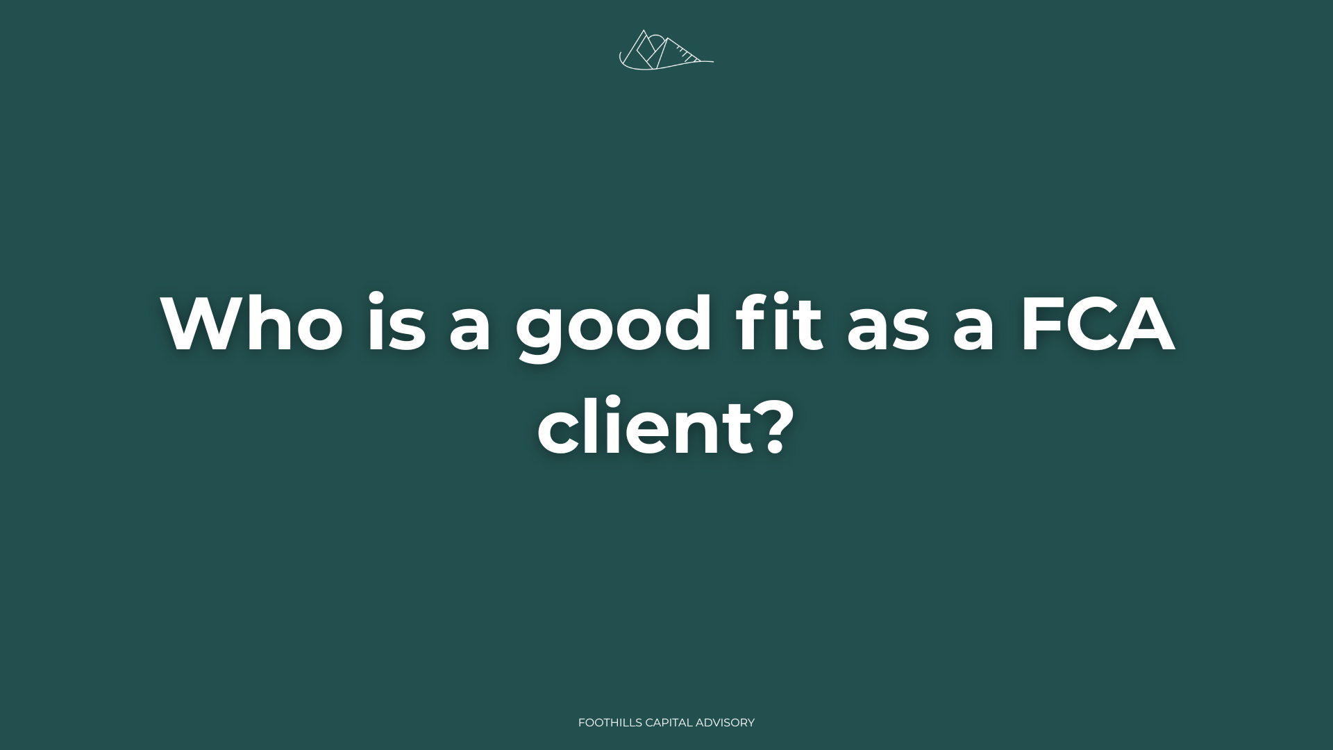Not everyone is a good fit for collaboration with Foothills Capital. This overview details what we’re looking for in our next client.
